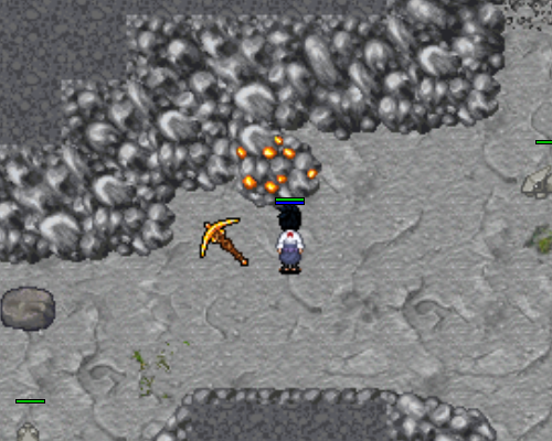 To start mining, get a pickaxe and use it on the ore. Ores can be found pretty much anywhere, but you have a higher chance of finding them inside the caves or in rocky areas.